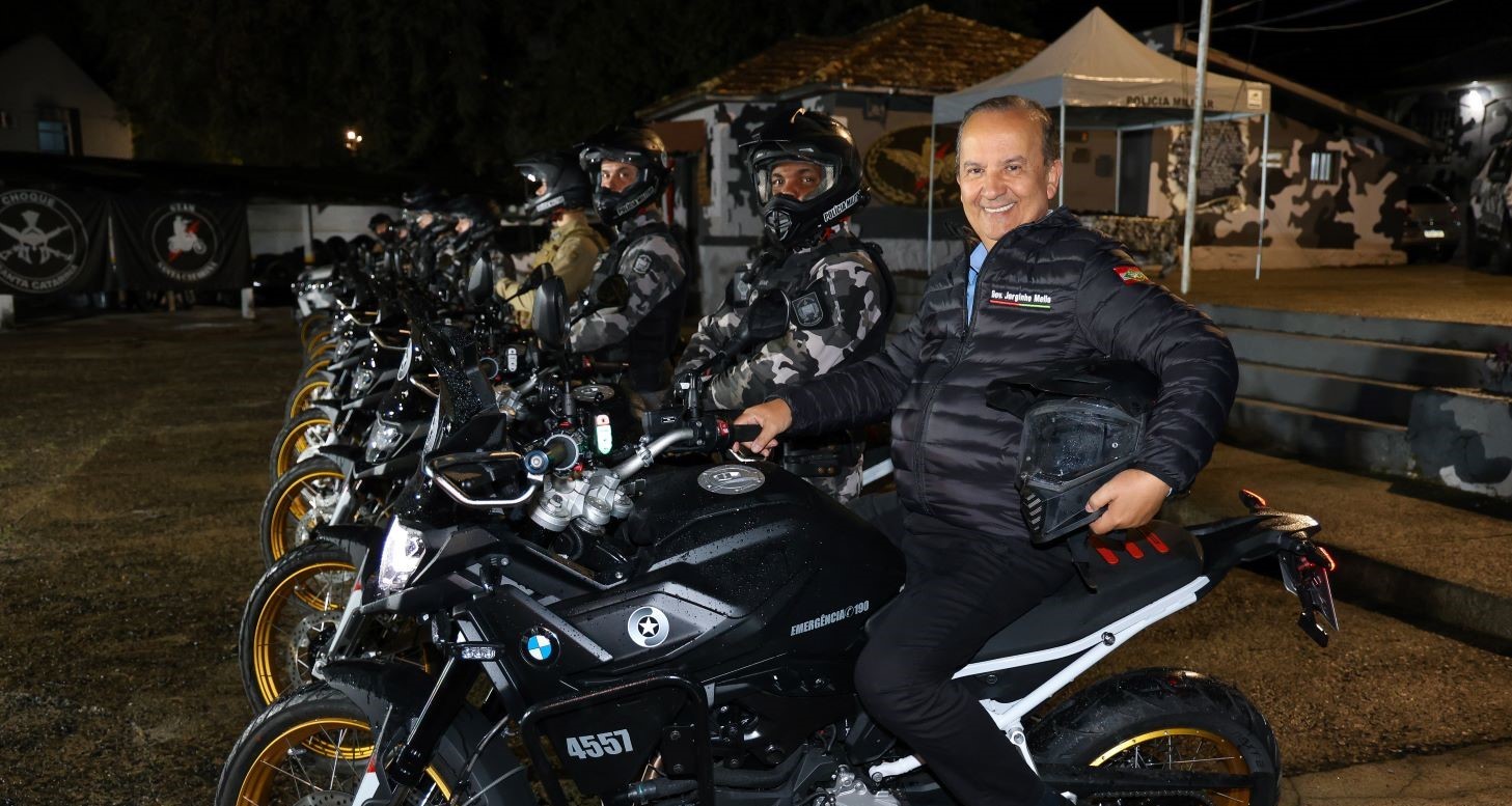 O governador Jorginho Mello entregou na quarta-feira, 21, dez novas viaturas ao Batalhão de Polícia de Choque (BPChoque) da Polícia Militar de Santa Catarina (PMSC). Os veículos, do tipo motocicleta BMW F900, foram adquiridas no valor total de R$ 950 mil.