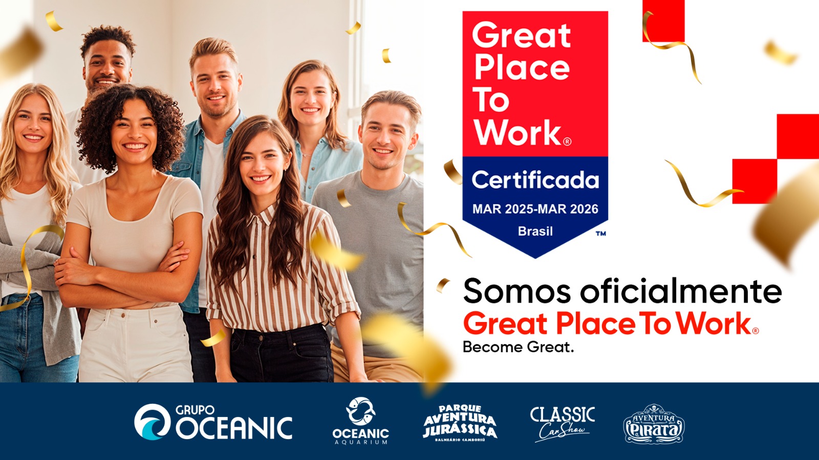 O Grupo Oceanic, referência no setor de turismo e entretenimento em Santa Catarina, acaba de conquistar o selo Great Place to Work (GPTW), uma das certificações mais respeitadas do mundo em clima organizacional. O reconhecimento atesta o compromisso da empresa com a valorização das pessoas, o desenvolvimento humano e a criação de um ambiente de trabalho saudável e inspirador. “Iniciamos com menos de 50 e hoje temos mais de mil colaboradores. Nosso objetivo sempre foi proporcionar um ambiente onde as pessoas se sintam valorizadas, respeitadas e tenham orgulho de fazer parte. Essa conquista mostra que estamos no caminho certo e reforça nosso compromisso com o desenvolvimento profissional, a saúde e segurança dos colaboradores. E assim cumprir nosso propósito de levar alegria e conhecimento às pessoas através dos nossos atrativos”, comemora Kiko Buerger, CEO do Grupo Oceanic.