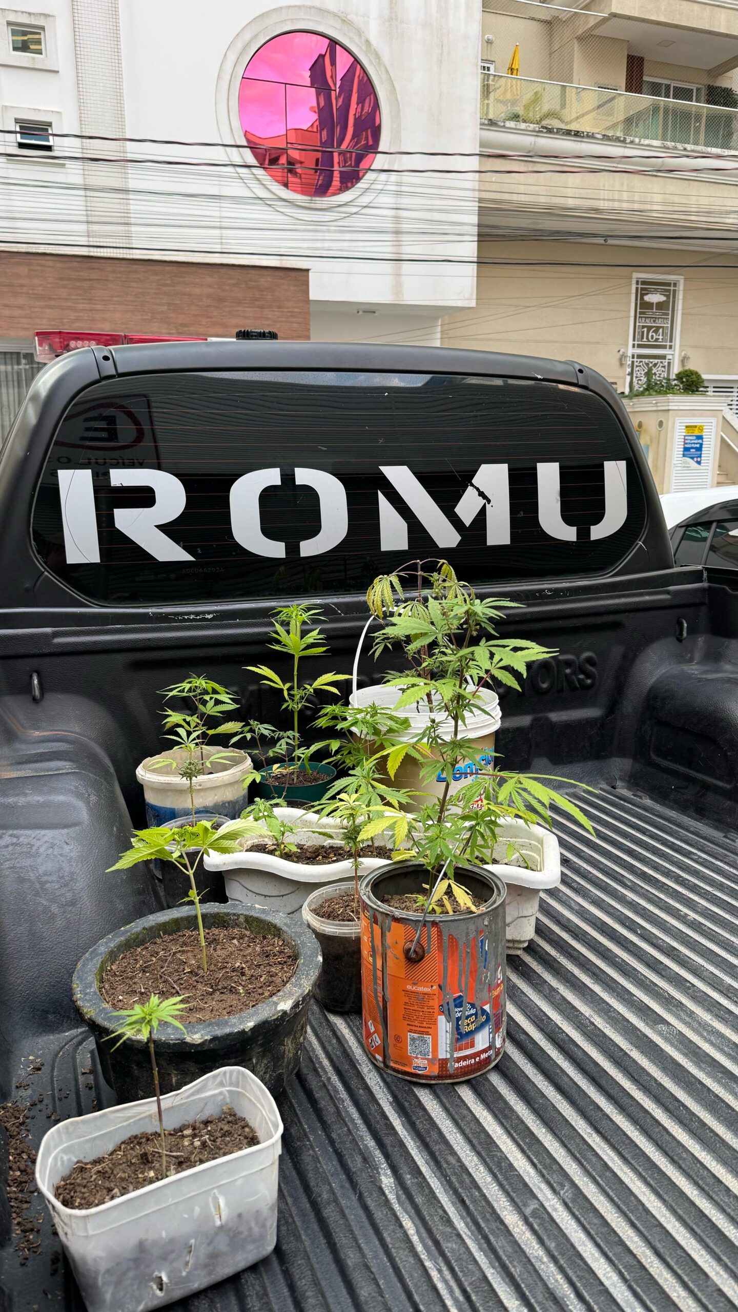 Segundo informações da corporação, um cidadão que caminhava pela via informou aos agentes sobre a possível existência de uma plantação irregular em uma residência. Ao chegar ao endereço indicado, a guarnição constatou, pela lateral do imóvel, a presença das plantas com características semelhantes à cannabis.