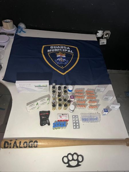 Em revista veicular, foram localizadas diversas substâncias, entre elas medicamentos e anabolizantes de procedência estrangeira, além de produtos diversos oriundos do Paraguai. No interior do automóvel também havia pertences pessoais do condutor, bem como um taco de beisebol e um soco inglês.