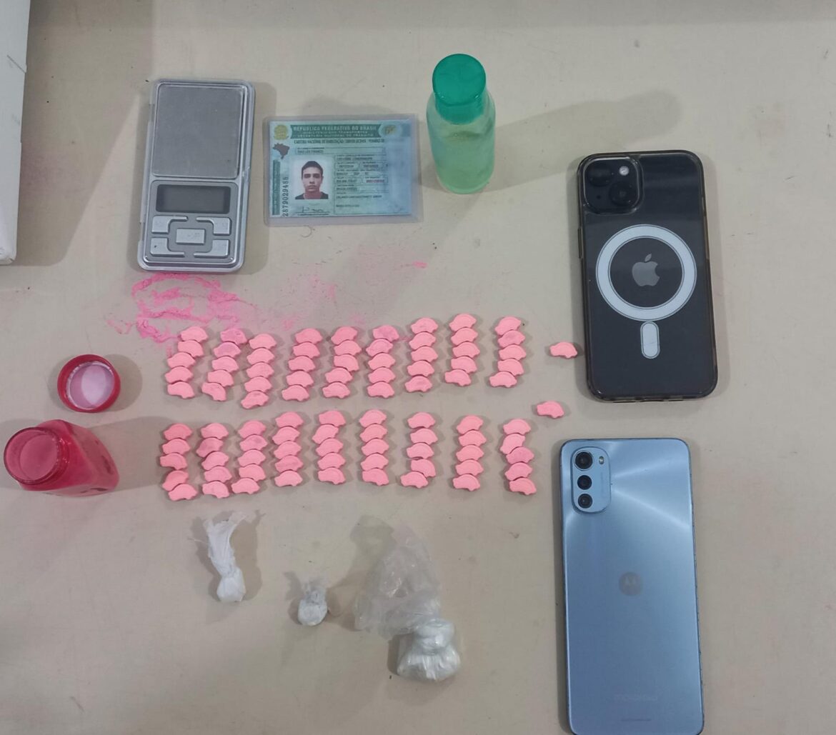 Neste dia 20, por volta das 21h, uma equipe da da Guarda Municipal de Itapema foi acionada para atender uma denúncia na qual um homem supostamente estaria cometendo o delito de tráfico de drogas, na altura da rua 301. Ao chegar no local, a guarnição encontrou o suspeito, J. P. A., iniciando-se a abordagem policial ao suspeito e mais dois homens que estavam no local. Com o abordado foram encontrados 4 (quatro) porções de substância análoga a cocaína e dinheiro em espécie.