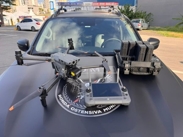 O drone adquirido é da linha DJI Matrice 30, equipamento profissional utilizado em operações de segurança e monitoramento. O modelo tem resistência a vento e condições climáticas adversas e alcance de transmissão de até 15 quilômetros em ambientes sem interferência.