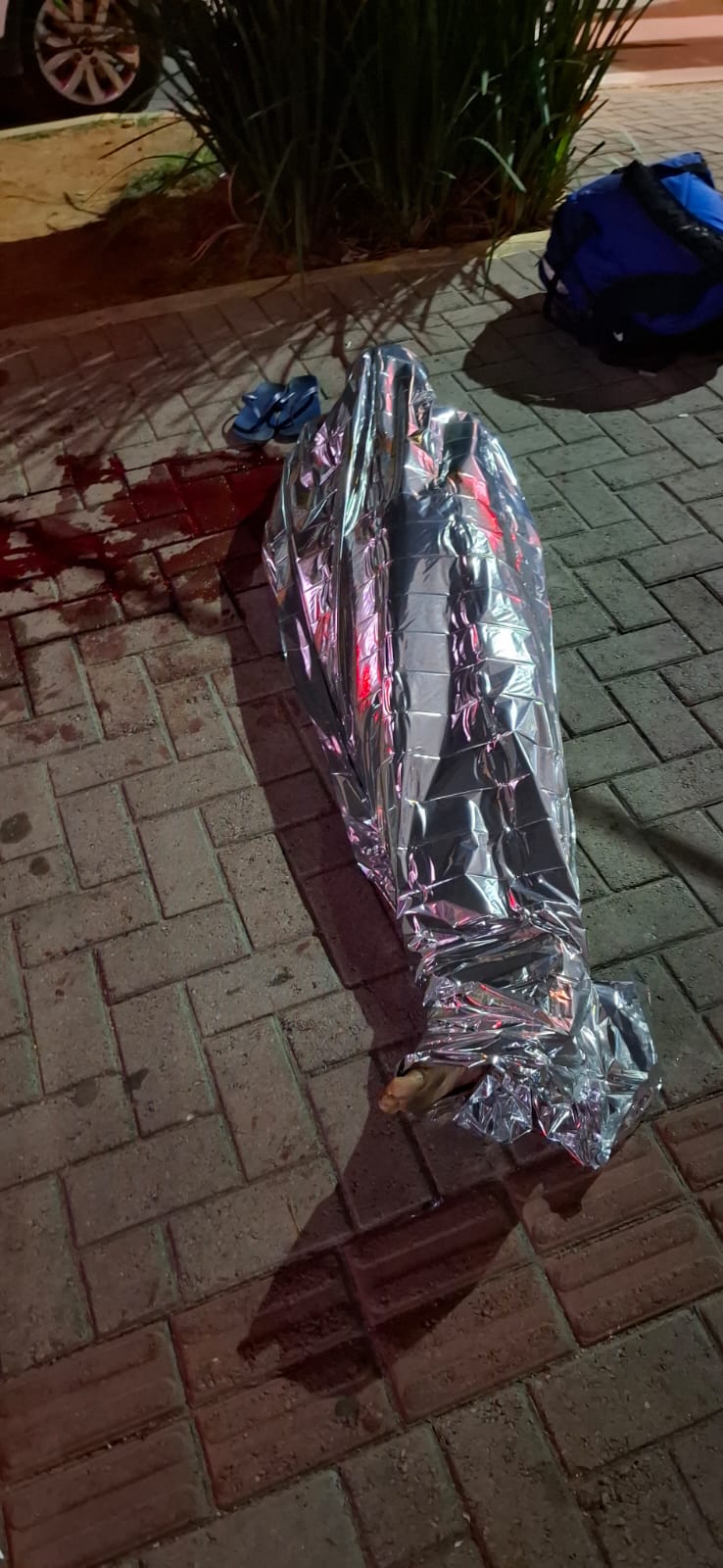 Aproximadamente 30min após inicio do atendimento a unidade Avançada do SAMU esteve no local e a equipe médica constatou o óbito no local. Foram verificados no corpo da vítima 04 ferimentos perfurantes causados por arma branca, 02 nos flancos costais e 02 nas costelas, próximo à axila. Os dados sobre a vítima são imprecisos, pois seu acompanhante não sabia informar nome completo ou data de nascimento. A Policia Militar prestou apoio no local e ficou responsável pela cena.