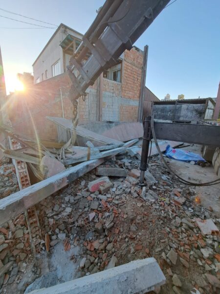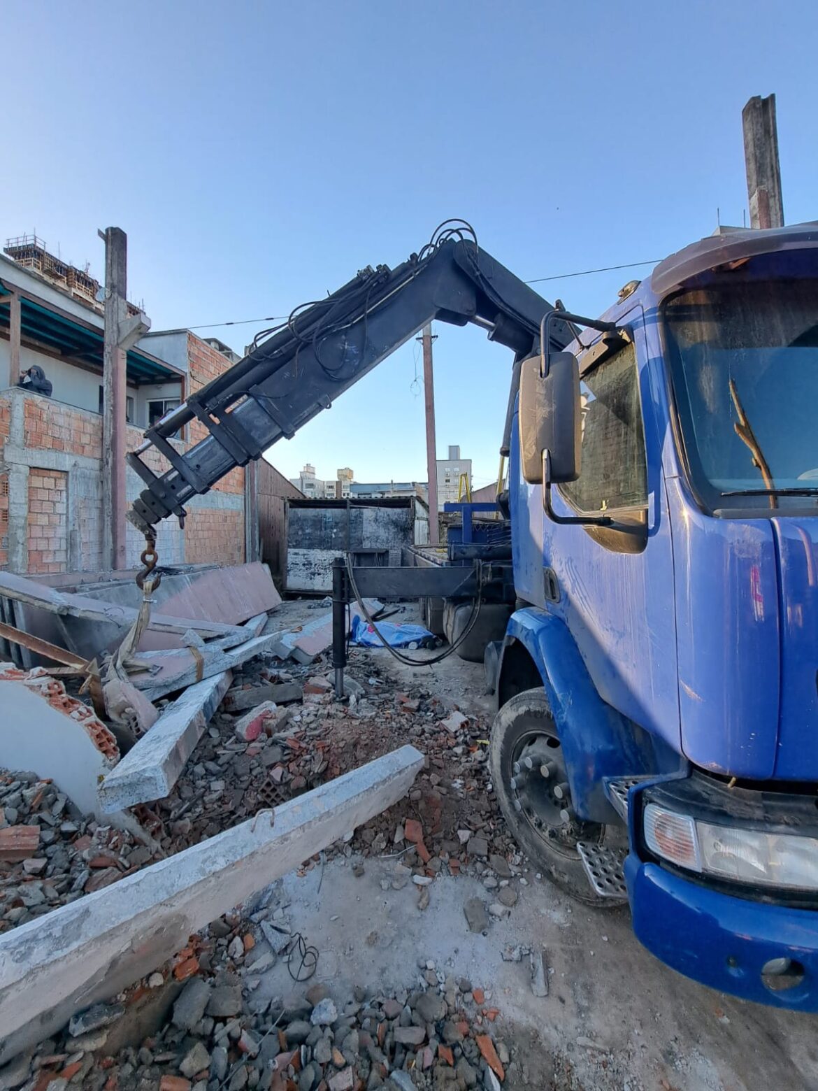 Chegando no local, rua 408, bairro Morretes, foi constatado que um barracão pré-moldado de concreto estava sendo desmontado, onde um caminhão tipo munk estava fazendo remoção das placas do local e segundo relato na cena, uma placa com aproximadamente 5 metros caiu do caminhão e atingiu dois homens.