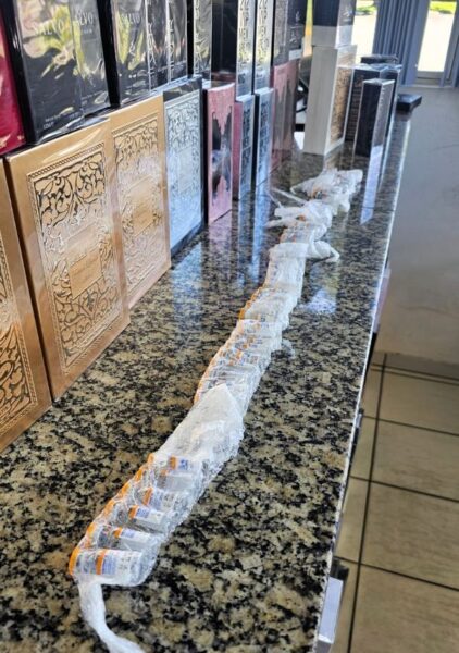 A ação ocorreu durante uma fiscalização de rotina. O utilitário de luxo era ocupado por moradores de Florianópolis e São José. Durante a vistoria, os policiais encontraram 44 ampolas do remédio de Tirzepatida — substância utilizada para emagrecimento —, além de frascos de Minoxidil (para tratamento de calvície) e um creme à base de canabidiol. Havia ainda 106 frascos de perfumes importados sem nota fiscal e alguns eletrônicos, espalhados pelo banco traseiro e porta-malas.