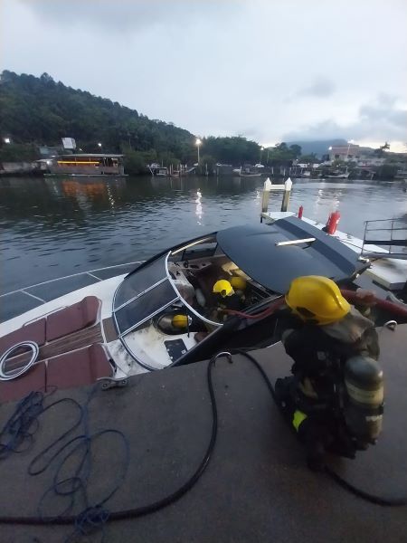 Ao chegar ao local, os bombeiros confirmaram que se tratava de um incêndio em uma motorboat de recreação e esporte, que estava atracada no píer de abastecimento da marina. A brigada de incêndio da própria empresa já atuava com duas linhas provenientes da Rede de Tubulação de Incêndio (RTI), o que foi decisivo para impedir a propagação das chamas para os tanques de combustível.