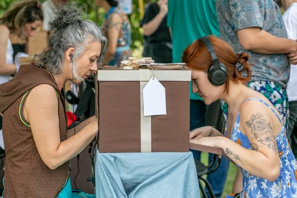 Criado na Bahia em 1989 pelas artistas Denise di Santos e Ismine Lima, o teatro lambe-lambe é uma linguagem que apresenta espetáculos de bonecos ou objetos em miniatura dentro de pequenas caixas, para um espectador por vez, proporcionando uma experiência íntima e sensorial.