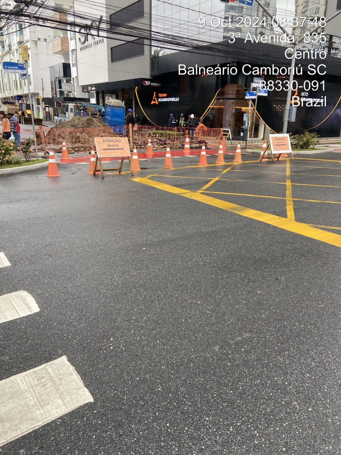 Por conta desta obra há interrupção de abastecimento de água e baixa pressão no Centro da cidade.