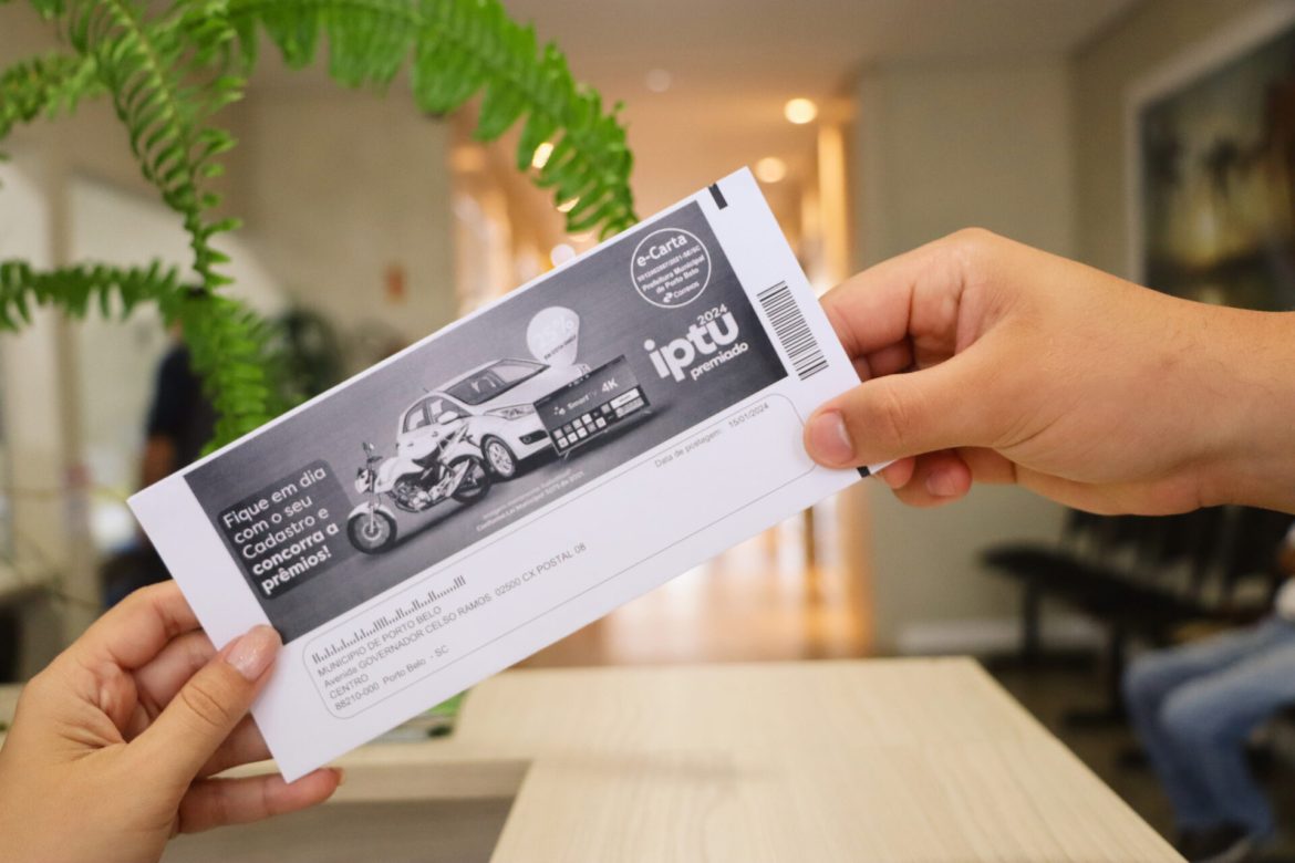 Os carnês para pagamento do IPTU 2024 já estão chegando nas casas dos contribuintes que possuem imóveis no Município de Porto Belo. Este ano, o Município volta a contar com o IPTU Premiado, que realiza o sorteio de um carro, uma motocicleta, e três televisões para contribuintes que estejam com os impostos em dia.