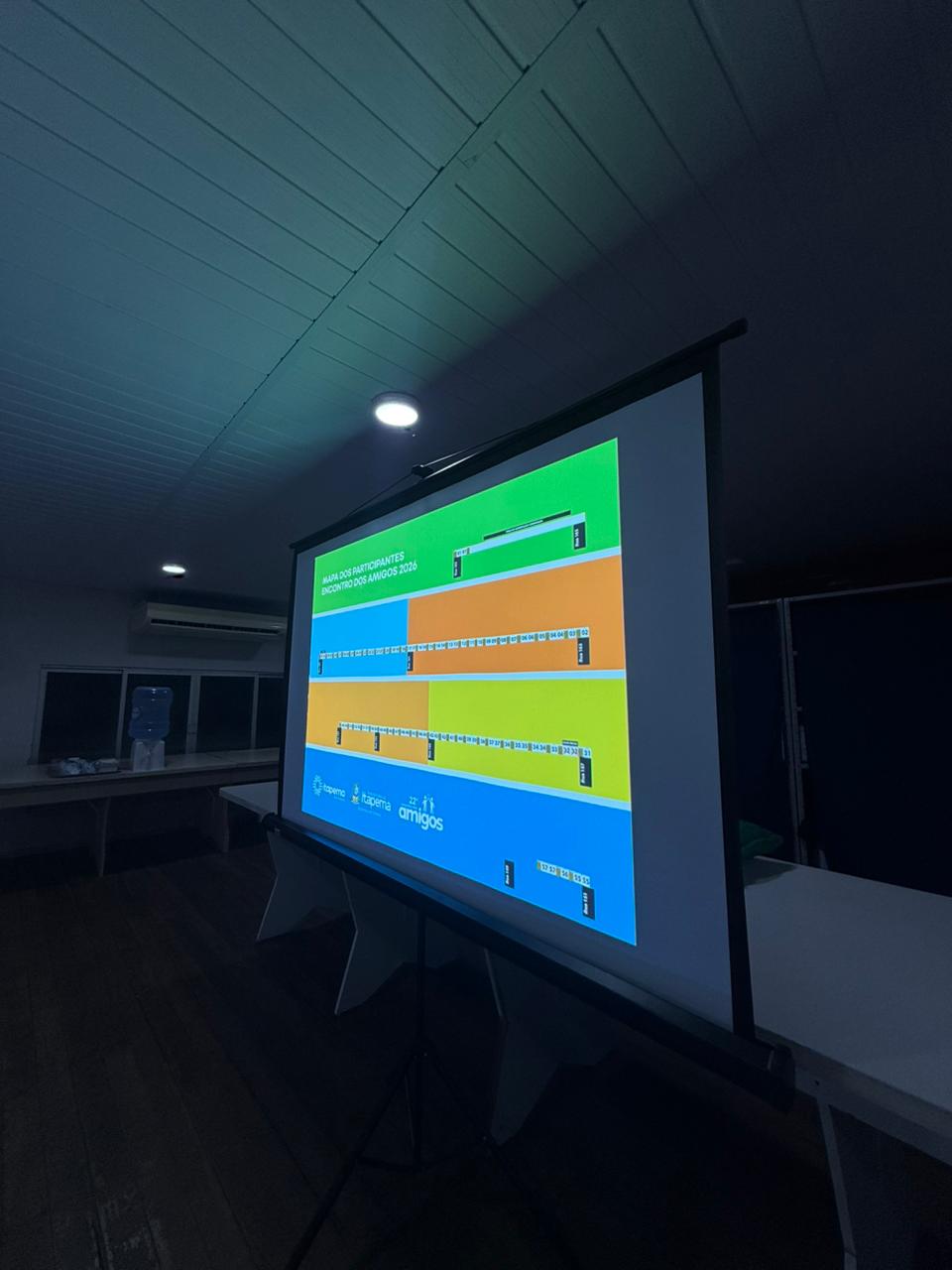 Durante a reunião, foram discutidos pontos como a divisão das barracas, regras de participação e orientações relacionadas à segurança, visando garantir a organização e o bom andamento da programação.