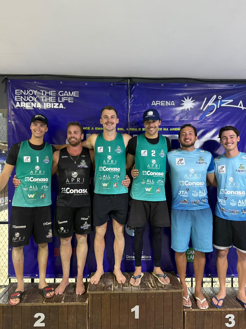 Em São José, durante a terceira etapa do Circuito UVP, realizada na Arena Ibiza, as duplas itapemenses dominaram o pódio entre 17 participantes: Nicolas Schosler e Bruno Peiter ficaram em 1º lugar; Tiago e Maestri garantiram o 2º lugar; e Samuel Bello e Vinícius Scoz conquistaram a 3ª colocação.