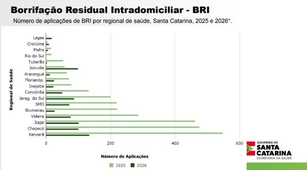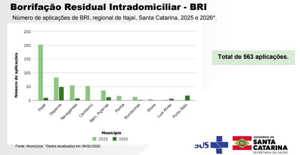 No total, a Regional de Saúde de Itajaí soma 563 aplicações de BRI considerando os anos de 2025 e 2026. Em 2025, a regional esteve entre as que mais realizaram aplicações em Santa Catarina, ficando atrás apenas de Xanxerê e Chapecó.
