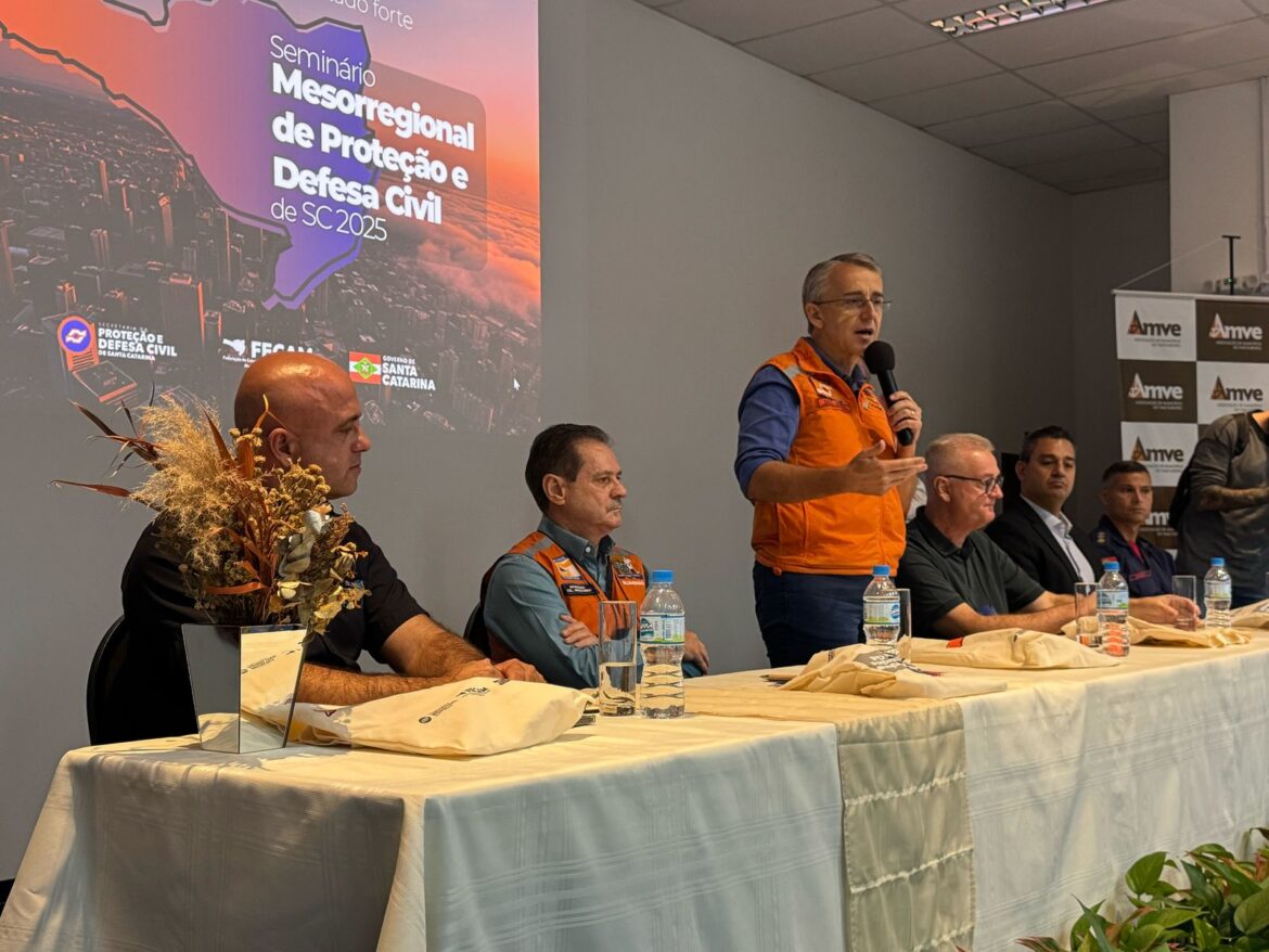 O seminário foi promovido pela Secretaria de Estado da Proteção e Defesa Civil de Santa Catarina, em parceria com a FECAM, e teve como tema central “Município Preparado, Estado Forte”. Durante a programação, foram discutidos temas como gestão de risco, adaptação climática, obras e projetos especiais, gestão de desastres e o planejamento do 1º Simulado Geral de Gestão de Desastres de SC, previsto para maio de 2025.