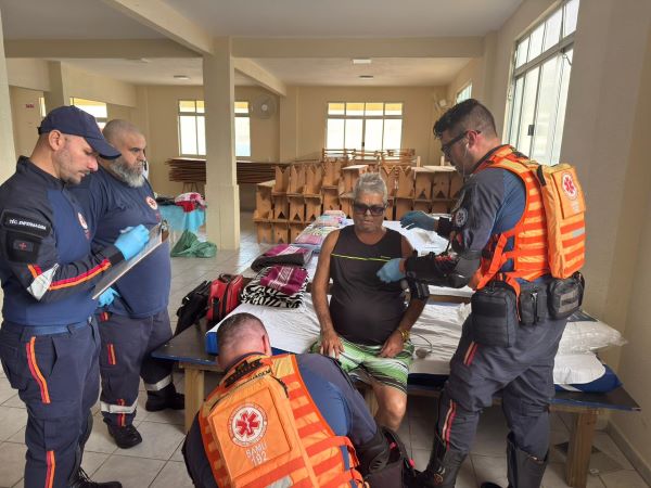 - Resgate simulado de vítima em área alagada, com atendimento pré-hospitalar realizado pelo SAMU;
