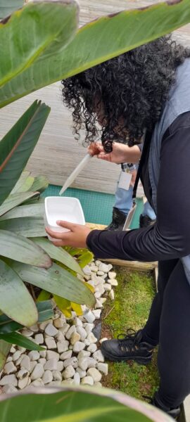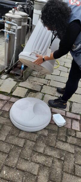 Durante as inspeções, os agentes conferiram locais com acúmulo de água, aplicaram larvicida BTI quando necessário e coletaram amostras que foram enviadas ao laboratório para análise, garantindo o monitoramento do mosquito transmissor.