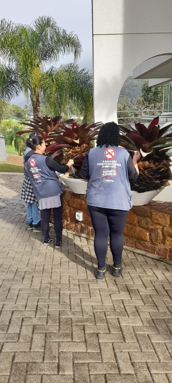 Nesta segunda-feira (1º), equipes de combate à dengue realizaram vistorias em hotéis, pousadas e condomínios da cidade, com o objetivo de identificar e eliminar possíveis criadouros do mosquito Aedes aegypti, prevenindo a propagação de doenças como dengue, zika e chikungunya.