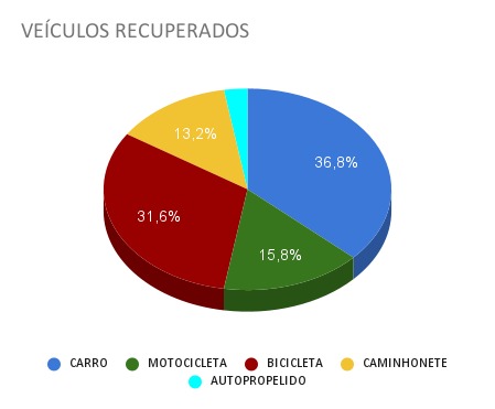 No combate ao furto e roubo de veículos, a GMI recuperou 38 veículos, com média de 6,1 por mês. Do total, foram devolvidos aos proprietários 14 carros, 6 motocicletas, 5 caminhonetes, 12 bicicletas e 1 autropropelido.