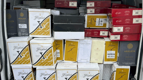 Durante a abordagem, os agentes constataram a presença de algumas garrafas de vinho dentro da cota permitida para transporte pessoal. No entanto, diante de indícios de irregularidade, foi realizada uma inspeção minuciosa, que culminou na descoberta de um compartimento oculto, um fundo falso no espaço destinado ao transporte de motocicletas, no qual estava acondicionadas mais de duas mil garrafas de vinho argentino, configurando o crime de descaminho.