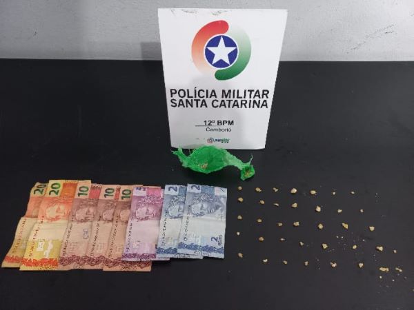 Realizada abordagem, foram encontradas 35 pedras de crack e R$ 79,00 em notas fracionadas.