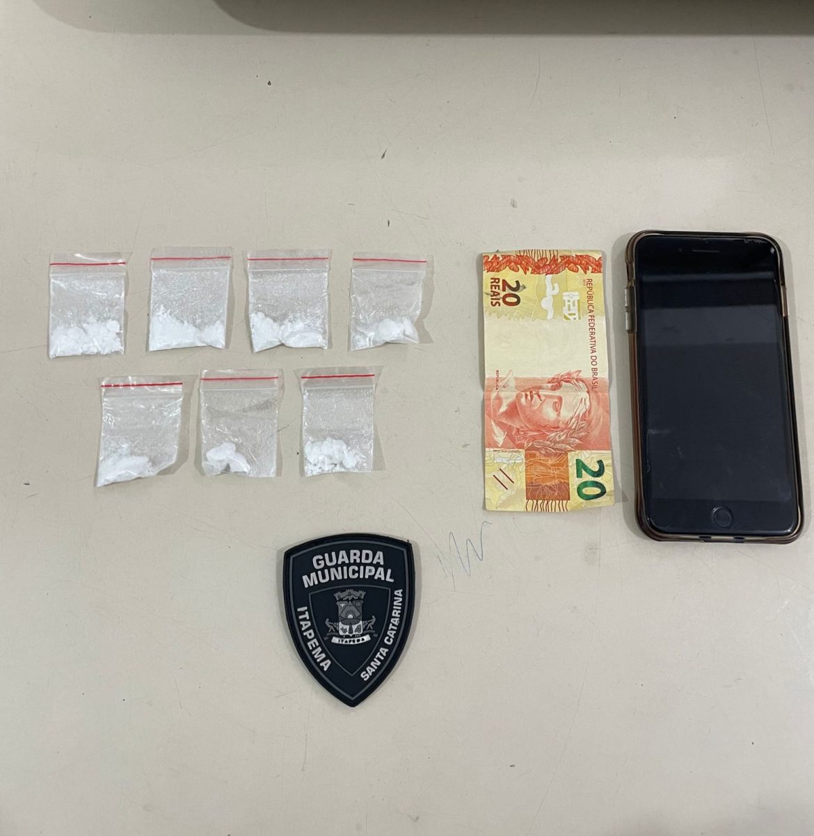 Em sua posse, além da droga, foi encontrado um telefone celular Iphone 8 Plus preto, e R$20,00.
