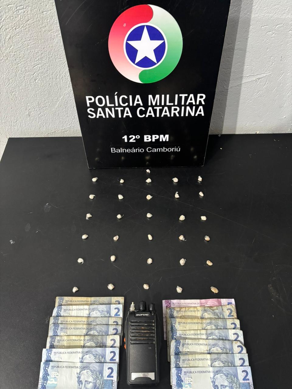 Durante rondas ostensivas, os policiais abordaram o adolescente, já conhecido das guarnições por envolvimento com o tráfico de drogas. Na abordagem, foram encontradas 31 pedras de crack embaladas e prontas para venda, além de R$31,00 em dinheiro, um smartphone e um rádio comunicador, equipamento frequentemente utilizado para monitorar a movimentação policial.