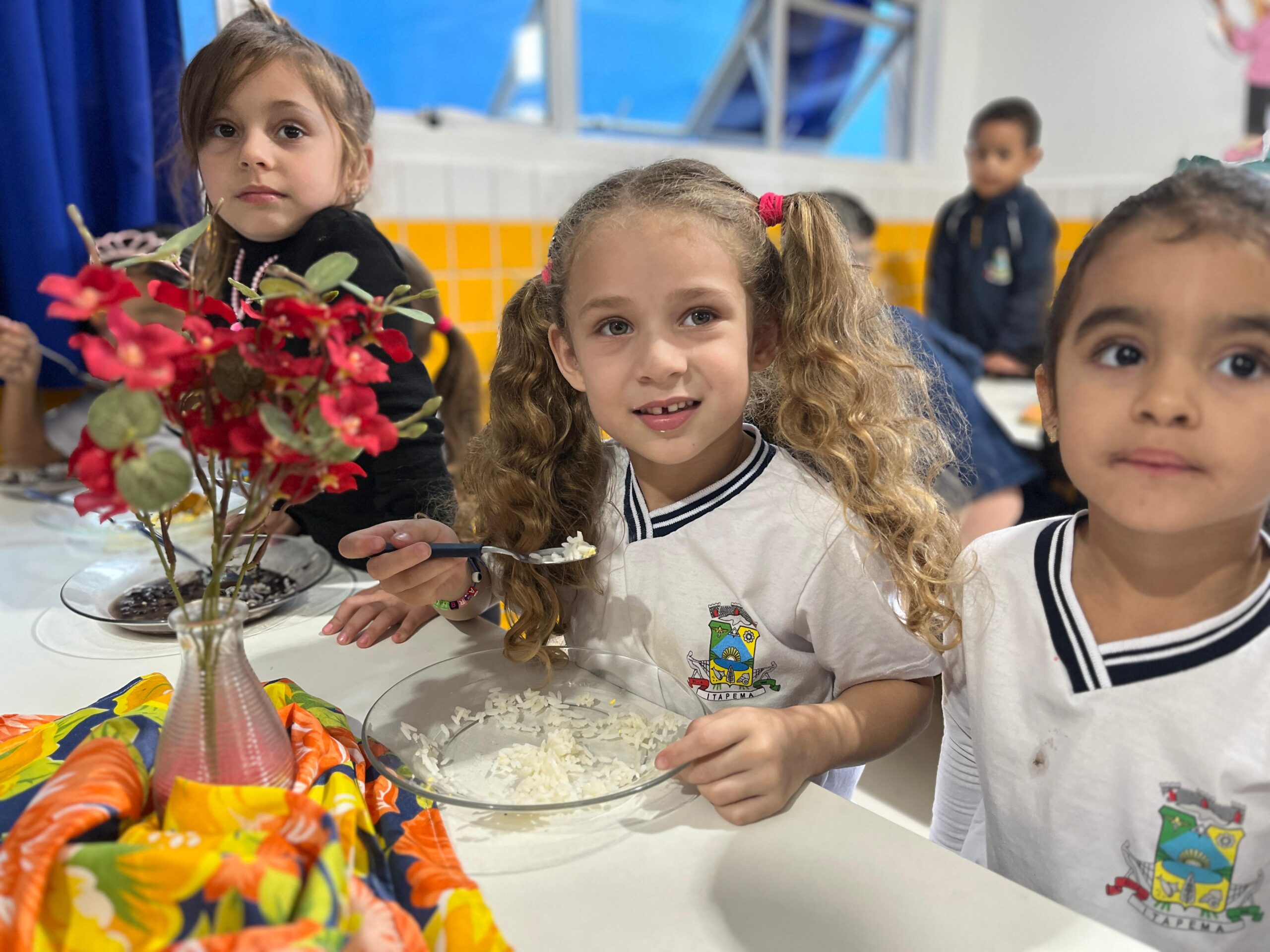 A alimentação escolar atende desde a educação infantil, passando pelo ensino fundamental, até o Ensino de Jovens e Adultos (EJA), contemplando estudantes com necessidades alimentares especiais, garantindo refeições adaptadas, seguras e inclusivas. Atualmente, o município possui 11 cardápios diferentes, definidos conforme o tempo de permanência do aluno: