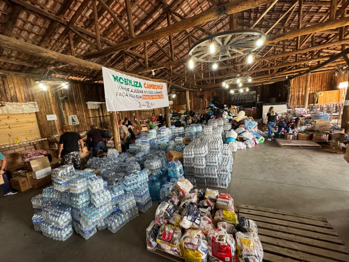 Após os eventos de chuvas que atingiram o Estado do Rio Gande do Sul, a Prefeitura por meio da Defesa Civil de Camboriú, se sensibilizou e iniciou uma campanha para levar doações para a cidade Capela de Santana. Em vista da calamidade instaurada no estado, entre os dias 2 e 8 de maio, foram coletados mais de 15 toneladas de donativos. Foram doados produtos de limpeza, água potável, alimentos não perecíveis, roupas e ração animal. As doações foram coletadas na Secretaria de Defesa Civil, no estacionamento do salão paroquial e escolas do município. Ao todo foram três caminhões, uma van, e na sede da Defesa Civil tem doações para encher mais um caminhão.