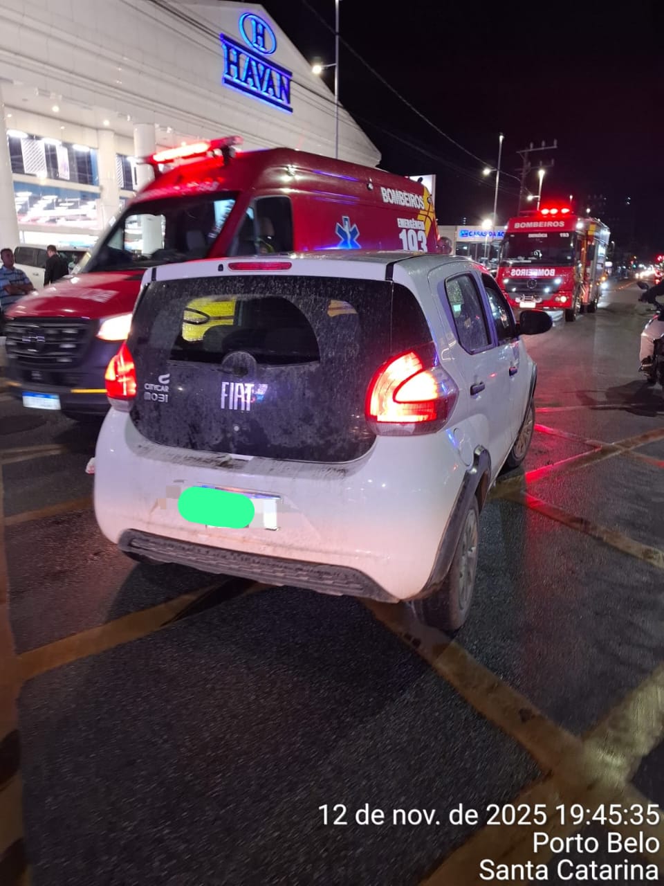 O Trem de Socorro de Porto Belo — composto pelas viaturas ASU-536 e ABTR-56 — foi acionado para o local do acidente. Segundo relatos colhidos na cena, o motociclista perdeu o domínio direcional da moto e acabou sendo projetado para a parte inferior do automóvel após o impacto.