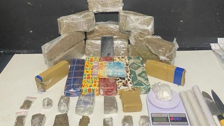 No interior da residência foram localizados e apreendidos cerca de 12,6 quilos de maconha, duas balanças de precisão, um aparelho celular, dinheiro em espécie, materiais para embalagem e facas.
