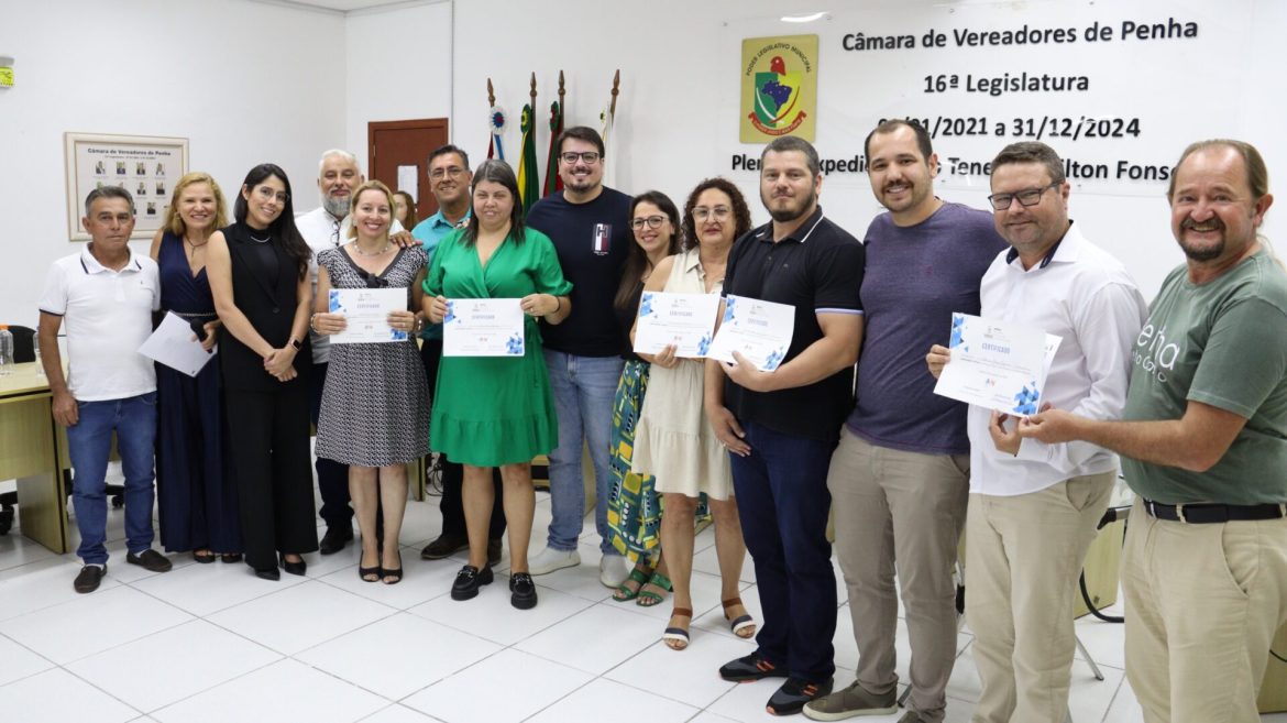Os cinco novos conselheiros tutelares de Penha, eleitos no ano passado pela população penhense, foram oficialmente empossados e diplomados na tarde desta quarta-feira (10/01), em cerimônia na Câmara de Vereadores. Os membros terão mandato de quatro anos pela gestão 2024/2028. Além dos titulares, mais cinco conselheiros tutelares suplentes estão à disposição para qualquer eventualidade.