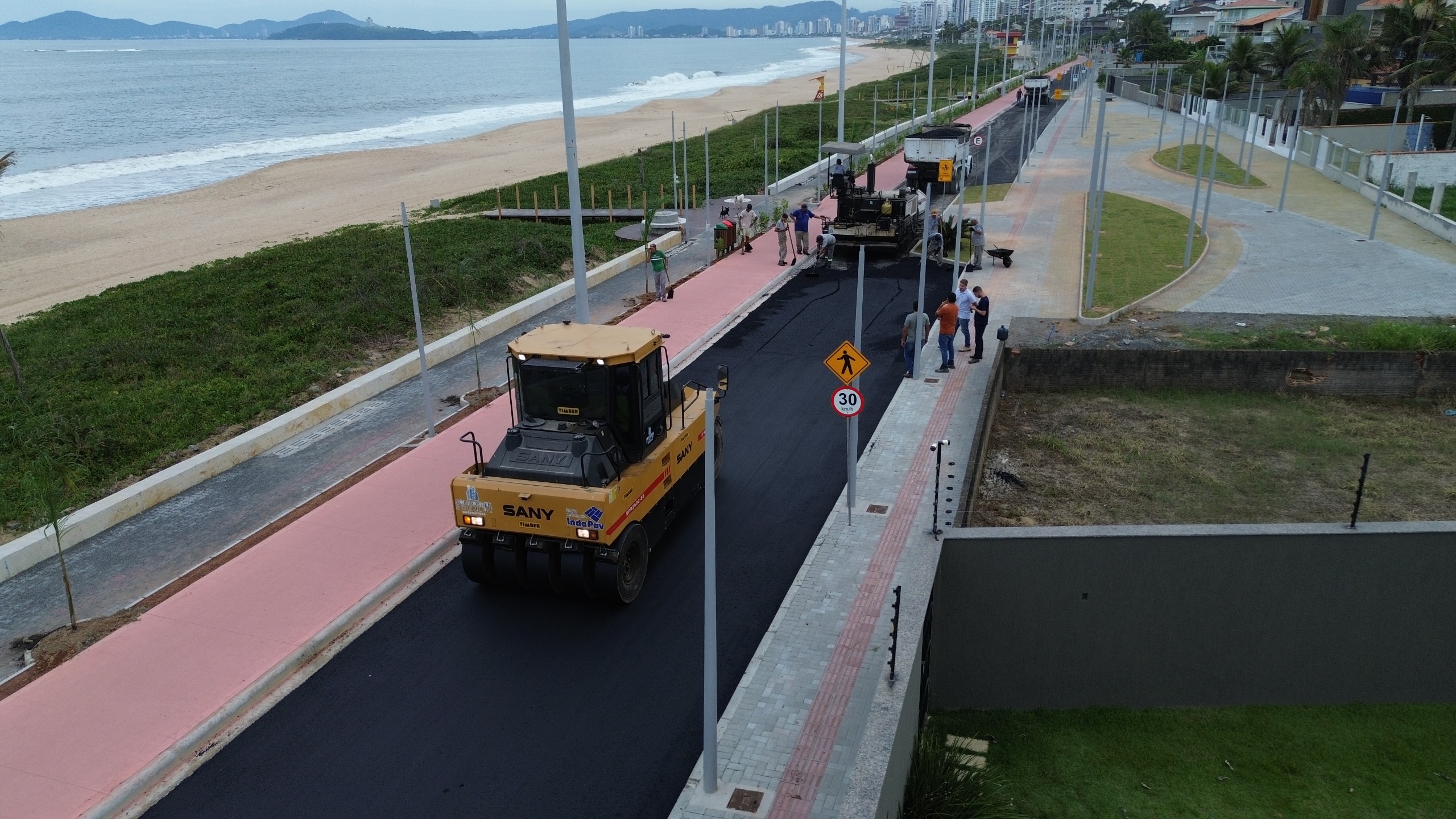 A obra de urbanização da avenida José Temístocles de Macedo (beira-mar) na parte norte, no bairro Itacolomi, entre a Rua Canto do Sol e o limite com Barra Velha, segue a todo vapor. O projeto visa transformar a região em um espaço de lazer e convivência, e já concluiu a rede de drenagem, pavimentação das calçadas e da ciclovia, muros de contenção, floreiras e canteiros. Nesta terça-feira (20/05), teve início a pavimentação asfáltica do primeiro trecho de 560m, previsto para concluir na quarta-feira (21/05).