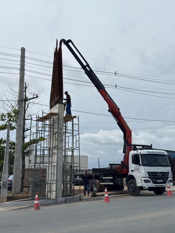 A obra de construção do novo portal turístico foi retomada nesta semana com a concretagem da estrutura que alcançará 14,86 metros de altura e após essa etapa, será realizada a montagem da parte metálica do portal. Localizada na entrada da cidade, na Avenida Getúlio Vargas, a obra havia sido interrompida devido à necessidade de aguardar a Celesc para retirada e readequação dos postes da via, etapa indispensável para a continuidade dos trabalhos.
