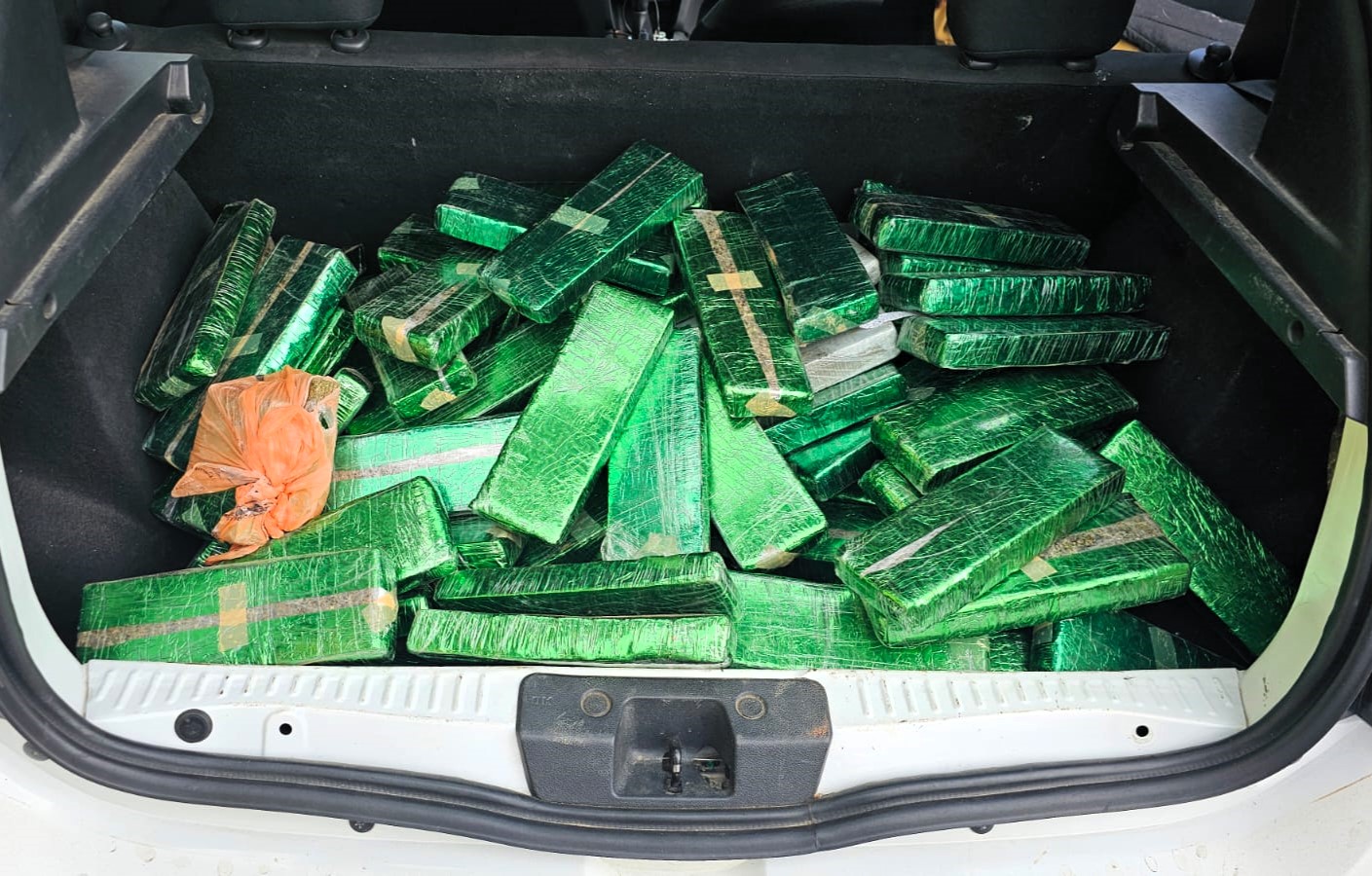 Durante a abordagem ao carro placas de Araranguá/SC, o motorista e o passageiro entraram em contradição sobre a origem e motivação da viagem. No porta-malas e assoalho do banco traseiro, panos pretos ocultavam o motivo do passeio: diversos tabletes de maconha, totalizando 134 quilos.