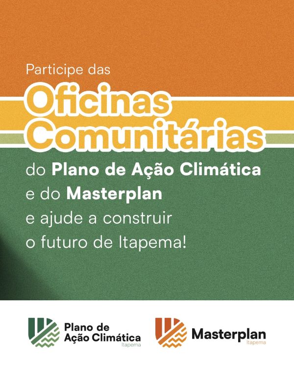 Itapema realiza nesta semana a segunda rodada das Oficinas Comunitárias do Plano de Ação Climática (PlanClima) e do Masterplan. Os encontros acontecem nesta terça (23) e quarta-feira (24), às 19h, no Ginásio de Artes Marciais do Bairro Morretes (GAM), na Rua 424, nº 1103.