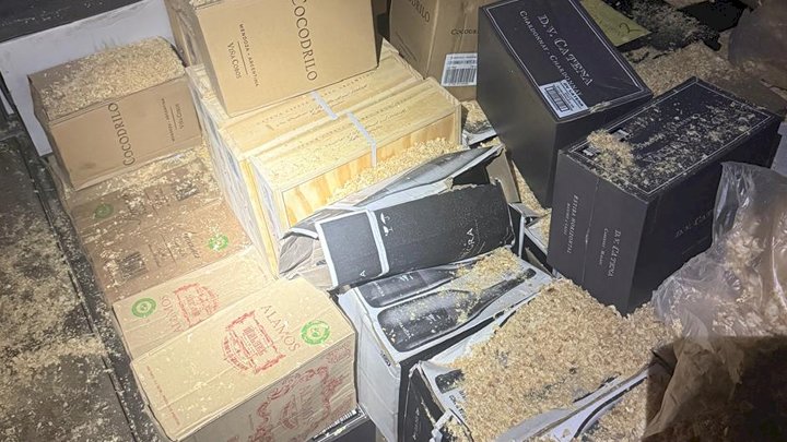 No total, foram apreendidas 960 caixas de vinhos de diversas marcas, 170 caixas de camarão congelado e 150 galões de azeite de oliva, cada um com capacidade de cinco litros.