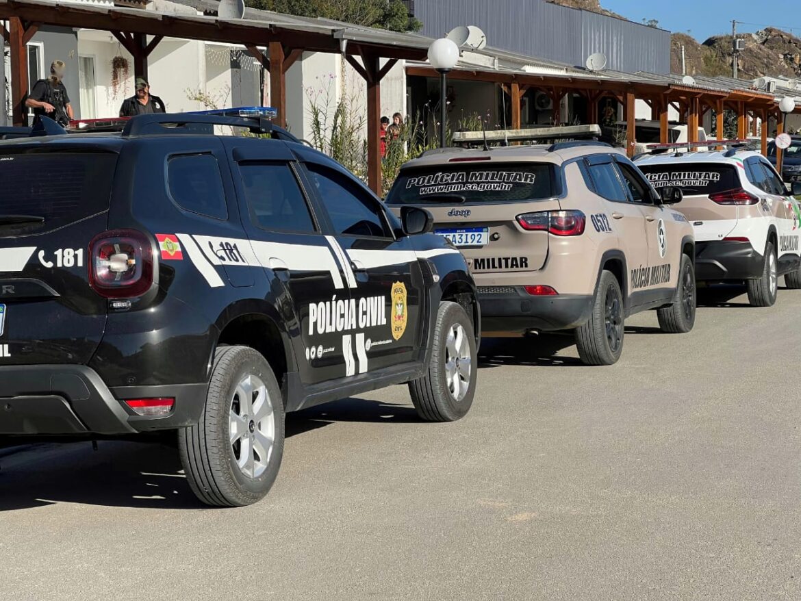 Na residência do agente, localizada no bairro Rio Pequeno, em Camboriú, foi encontrado uma espingarda calibre 12, munições e anabolizantes.
