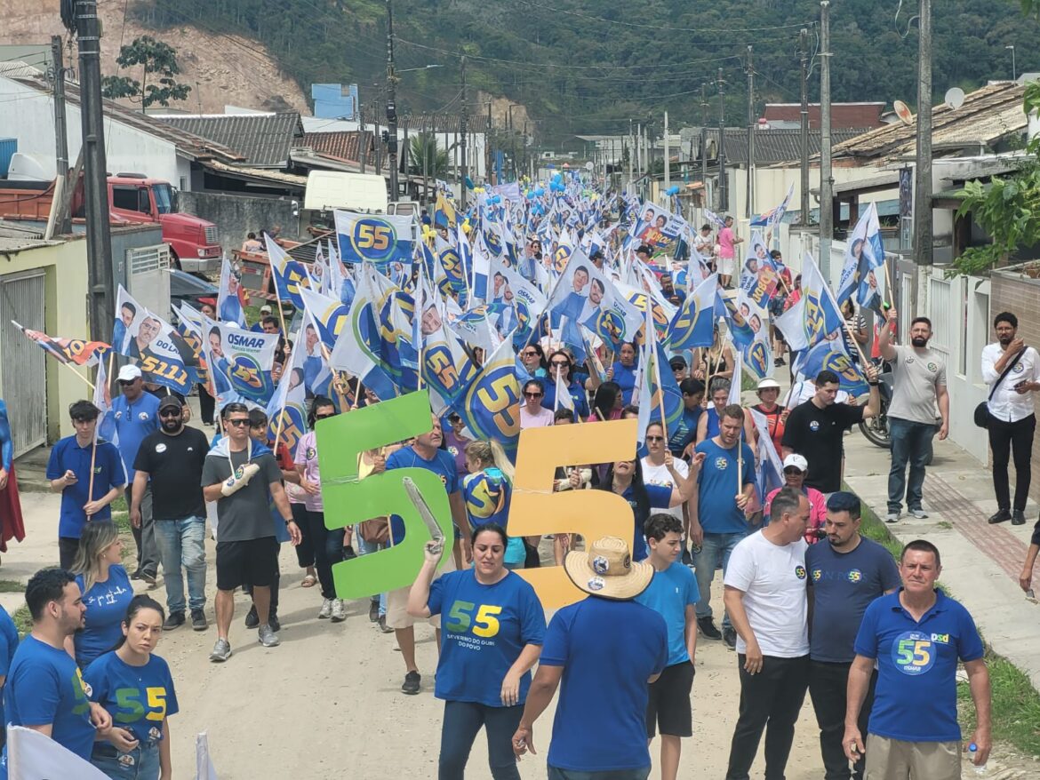 Na manhã deste domingo (29), o bairro Santa Regina foi palco da Grande Caminhada da Mudança, liderada pelos candidatos Osmar Teixeira e Marcelo Werner, da coligação 55. O evento reuniu os candidatos a vereadores e mobilizou apoiadores de toda Itajaí, reforçando o crescente apoio à campanha na reta final das eleições.