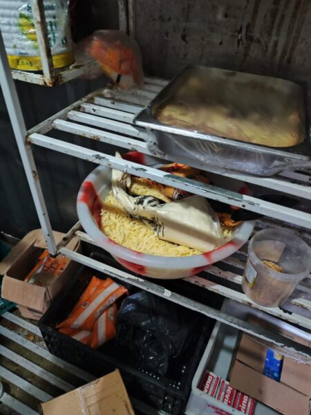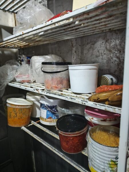 Durante a vistoria, foram identificadas diversas irregularidades, como produtos vencidos, presença de insetos (incluindo baratas e moscas), falta de higiene, acondicionamento inadequado dos alimentos, manipulação sem identificação e organização precária no ambiente de produção e armazenamento. Diante da gravidade da situação, o estabelecimento foi imediatamente interditado.