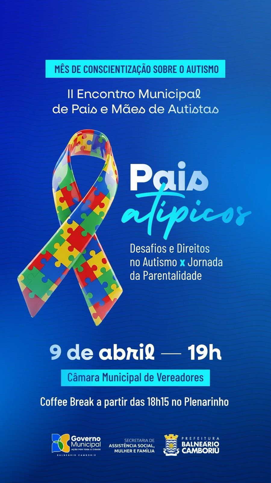 A Prefeitura de Balneário Camboriú, por meio da Secretaria de Assistência Social, Mulher e Família, promove, nesta quinta-feira (9), o 2º Encontro Municipal de Pais e Mães de Autistas. O evento será realizado na Câmara de Vereadores (Avenida das Flores, 675 — Estados), a partir das 19h, com participação aberta à comunidade em geral.