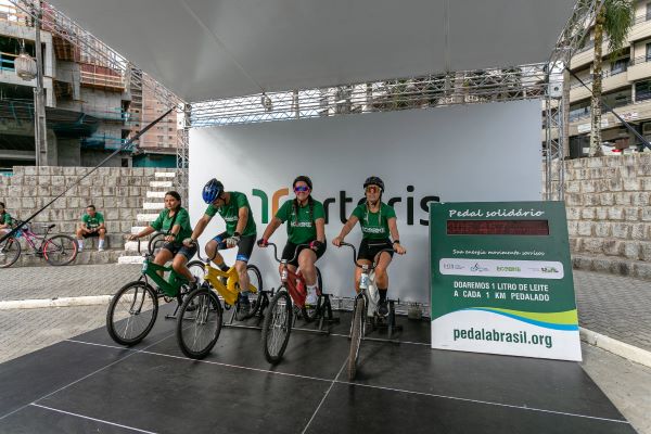Um dos destaques foi o Espaço Solidário, onde os participantes pedalaram em bicicletas estacionárias para transformar esforço físico em doações. Ao todo, foram percorridos 413 quilômetros, marca que será convertida em litros de leite destinados à Secretaria de Assistência Social de Itapema.