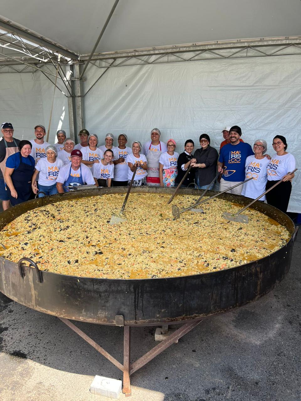 A mariscada foi cozida em um panelão de ferro com três metros de diâmetro, reunindo ingredientes que ultrapassaram uma tonelada no total.