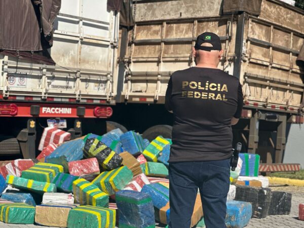 Na noite de sexta-feira (02/05), a Polícia Federal apreendeu um caminhão bitrem carregado de maconha na BR-101, próximo ao pedágio de Porto Belo/SC. O motorista foi preso em flagrante e conduzido à Superintendência da PF em Florianópolis, onde foi autuado por tráfico de drogas.
