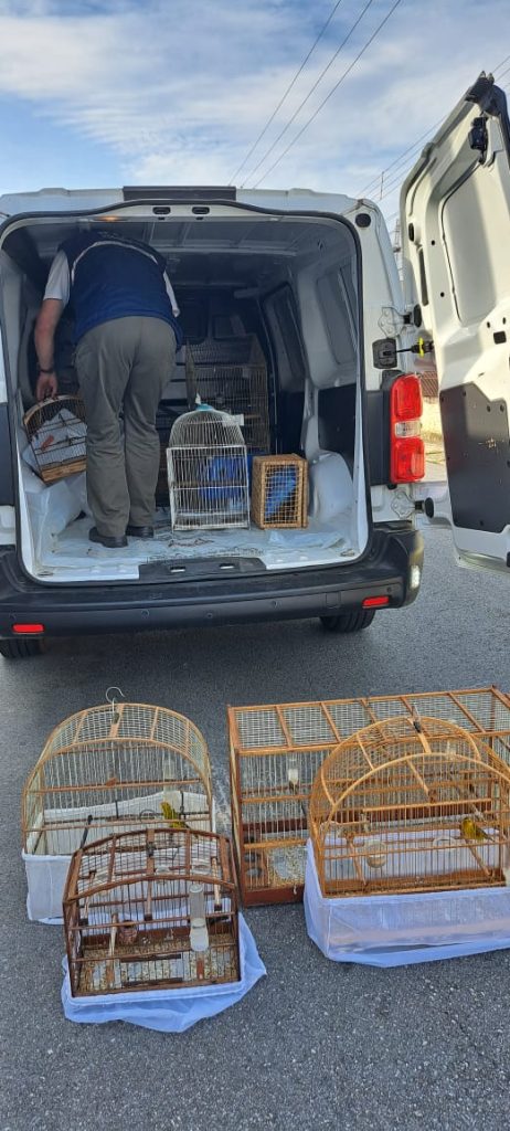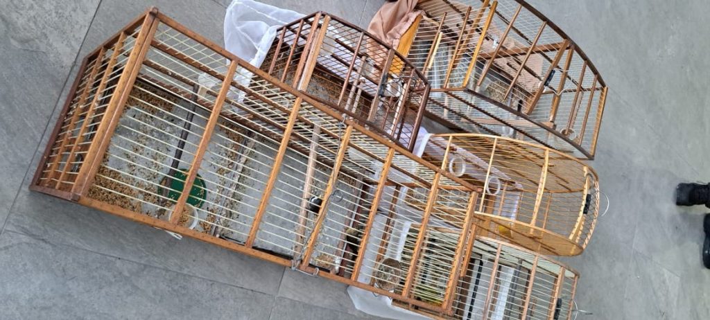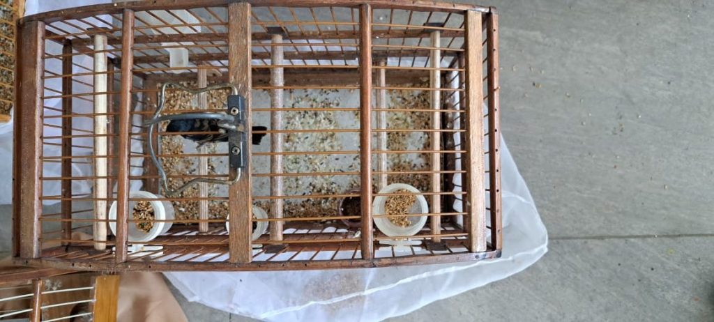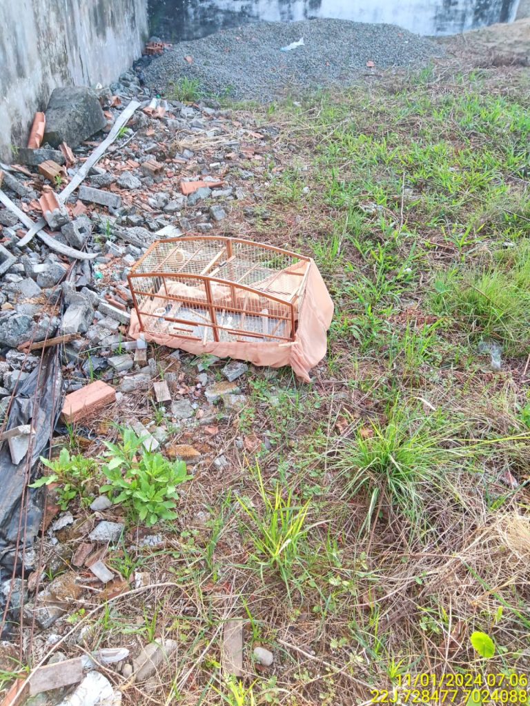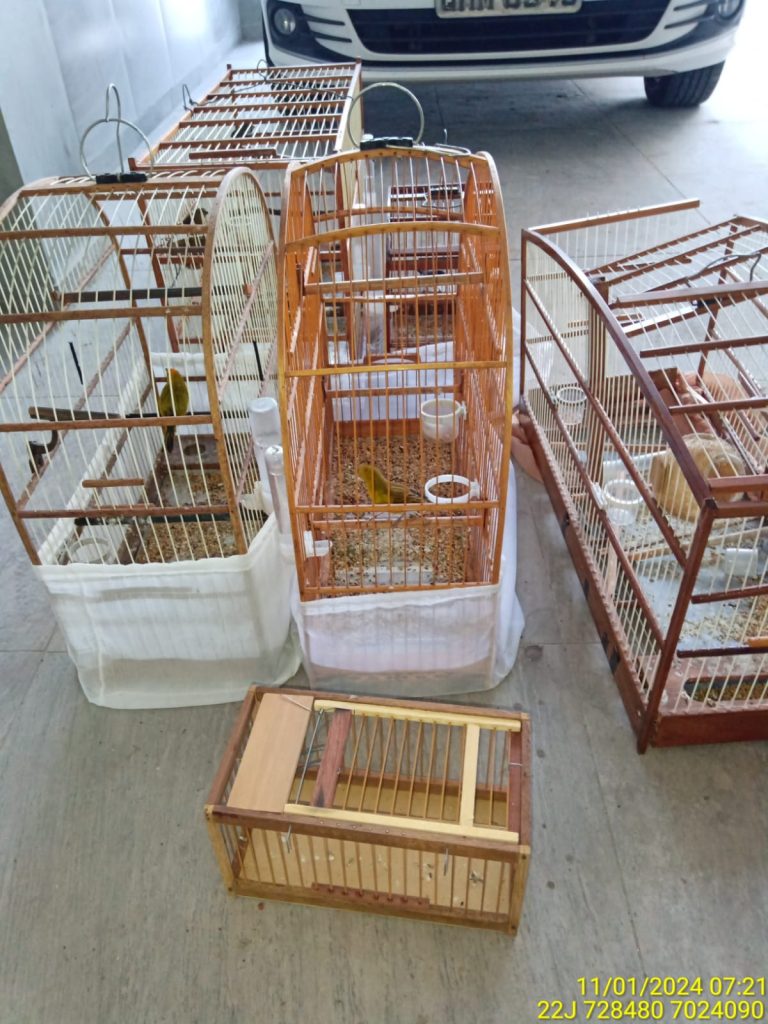 Durantes as buscas foram apreendidos 08 pássaros, mantidos sem as devidas autorizações dos órgãos ambientais, 6 gaiolas e duas arapucas o que motivou a prisão em flagrante do investigado.