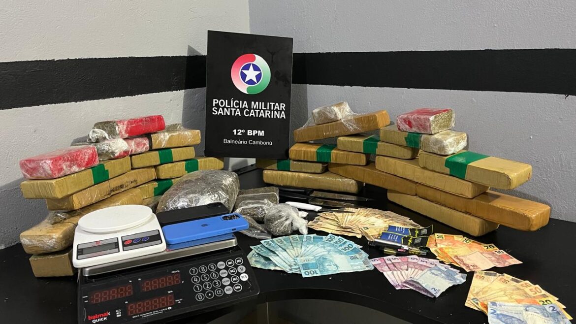 Na residência do suspeito, foi encontrado mais 13,9kg de maconha, 1,537kg de skunk, 5g de cocaína, cigarros de THC, balanças de precisão e facas com resquícios de drogas.