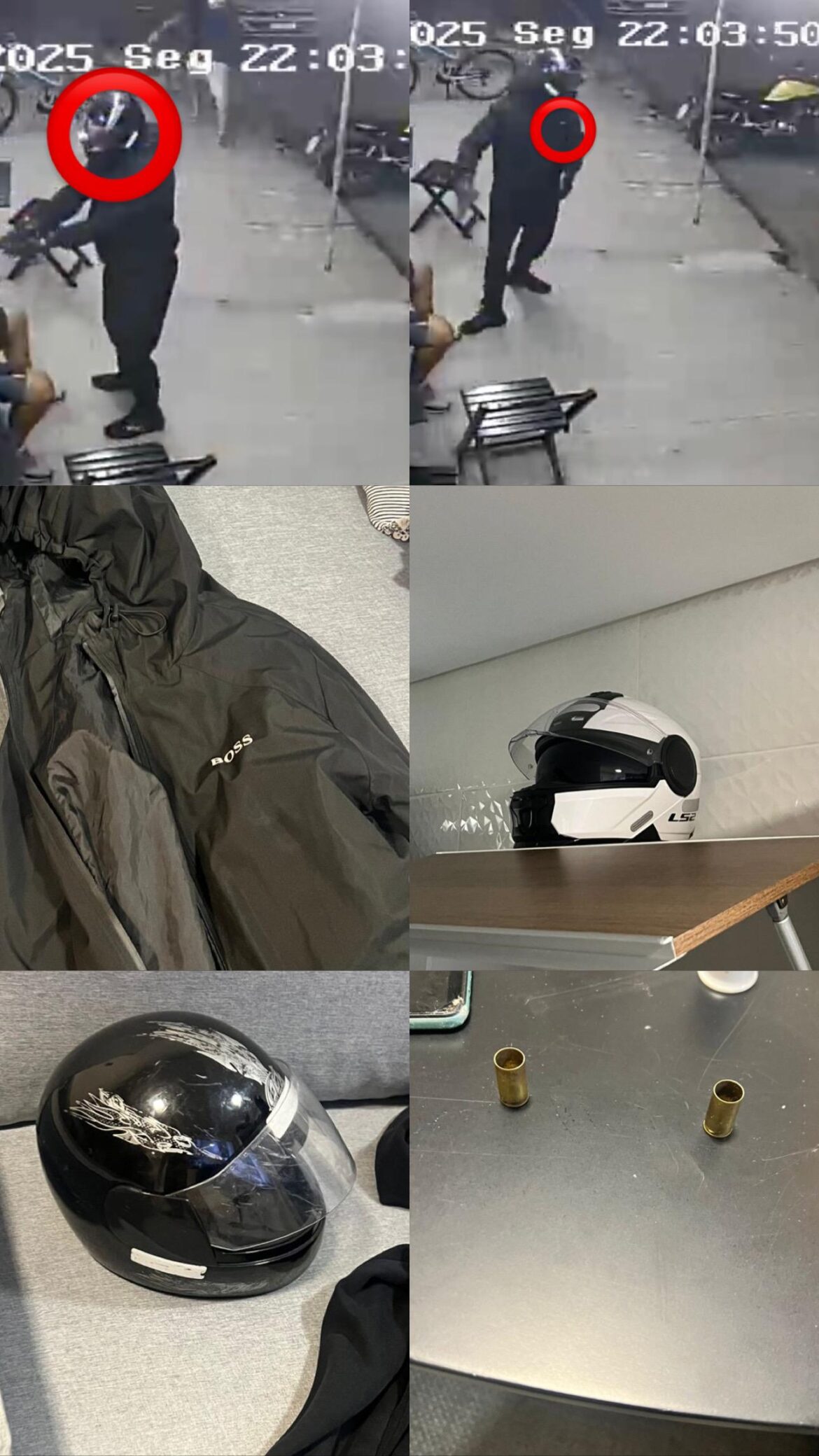 Em um imóvel, situado na Rua Rio de Janeiro, em Camboriú, foram encontradas duas cápsula de munição calibre 9mm deflagradas, porção de MDMA, balança de precisão, sacos plásticos para acondicionamento de drogas (idênticos aos localizados no interior do veículo Ônix apreendido), dois capacetes e uma blusa, também idênticos aos utilizados pelos criminosos.
