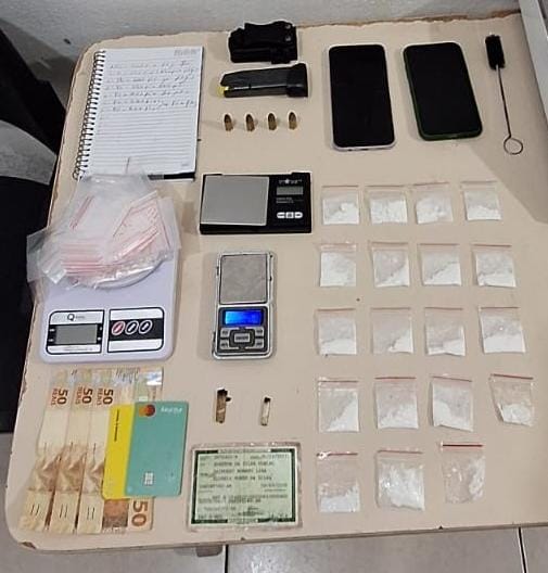 De acordo com a PM, as guarnições iniciaram diligências e localizaram uma residência nos fundos de um conjunto de casas de aluguel. Durante o monitoramento, os policiais flagraram o suspeito em frente ao imóvel, manipulando a motocicleta e fazendo uso de entorpecente. Na abordagem, ele admitiu estar com drogas na jaqueta. Na busca pessoal, foram encontradas 15 buchas de cocaína embaladas em sacos plásticos.