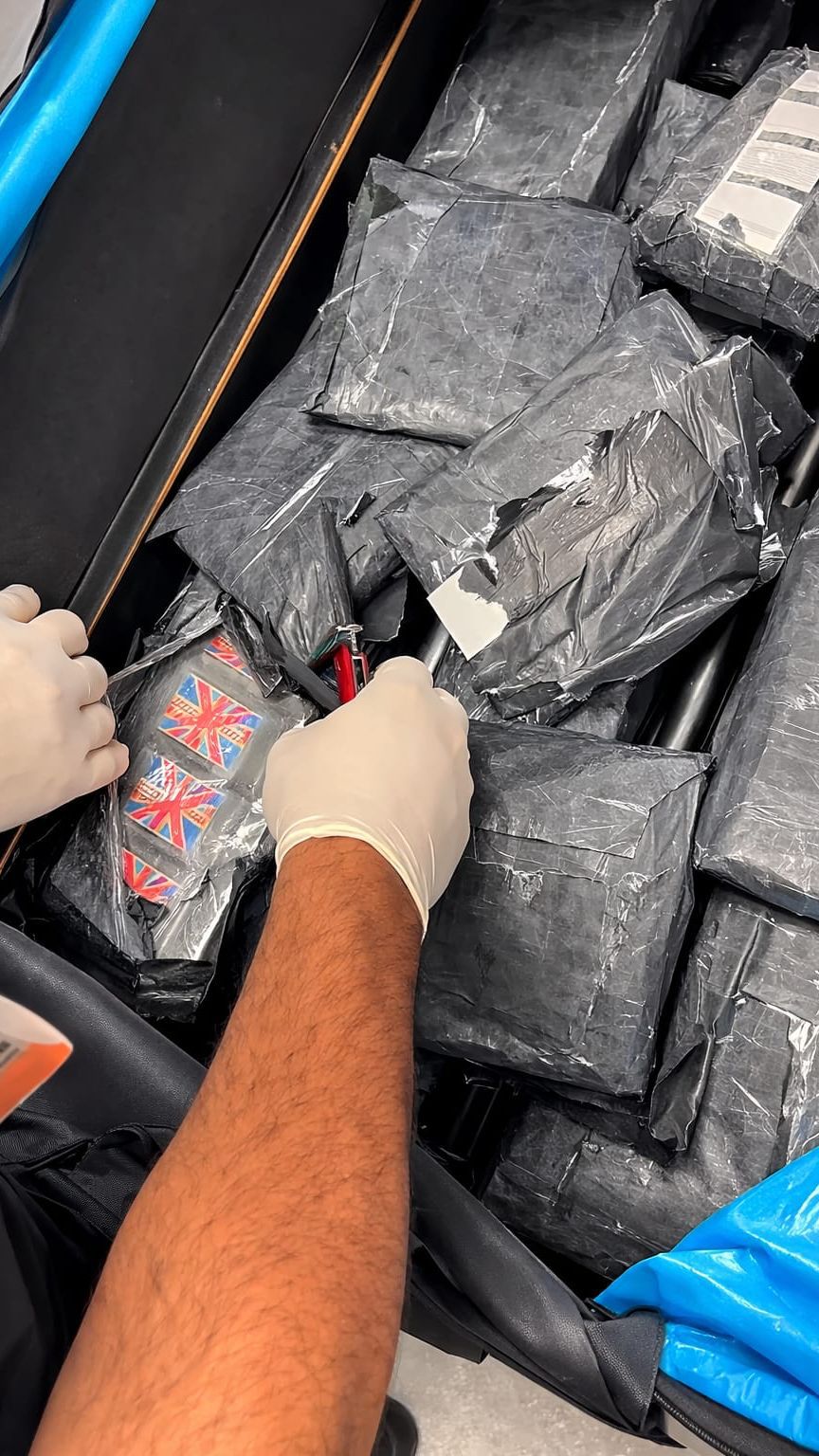 Durante inspeção na área reservada, a droga foi localizada em um fundo falso dentro da mala despachada.