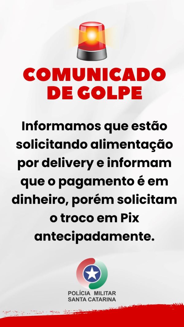 De acordo com a corporação, os golpistas utilizam fotos de policiais militares para dar aparência de legitimidade ao contato. A prática consiste em realizar pedidos de alimentação por delivery, informar que o pagamento será feito em dinheiro e, em seguida, solicitar que o entregador envie antecipadamente, via PIX, o valor referente ao troco. Após o envio do dinheiro, o criminoso interrompe o contato e não recebe o pedido, causando prejuízo à vítima.