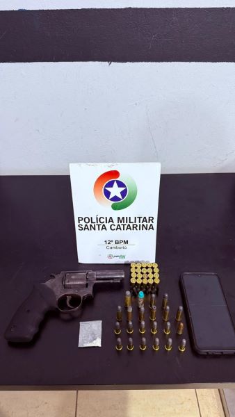 Com base nas informações repassadas, os policiais deslocaram-se imediatamente ao endereço indicado, onde localizaram o suspeito e, durante a verificação no interior do imóvel, encontraram um revólver calibre .38, 20 munições em cunhete, 19 munições avulsas de calibre .38, 02 munições calibre .44 Magnum e 01 munição calibre 9mm, todas armazenadas em um cofre.