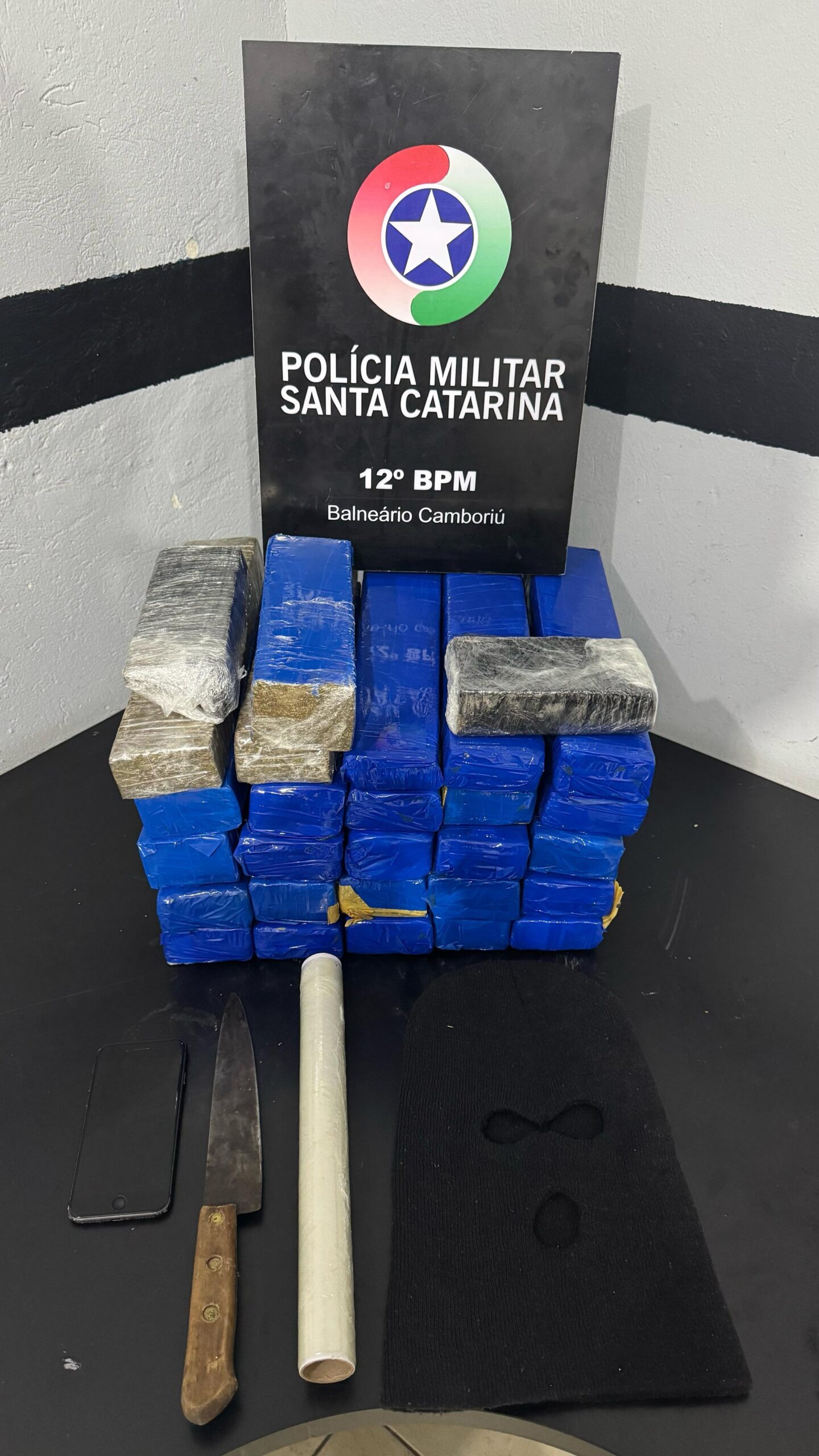A Polícia Militar de Santa Catarina, por meio do 12º Batalhão, apreendeu na data de hoje aproximadamente 22 quilos de maconha na Rua Monte Corcovado, bairro Monte Alegre, em Camboriú.